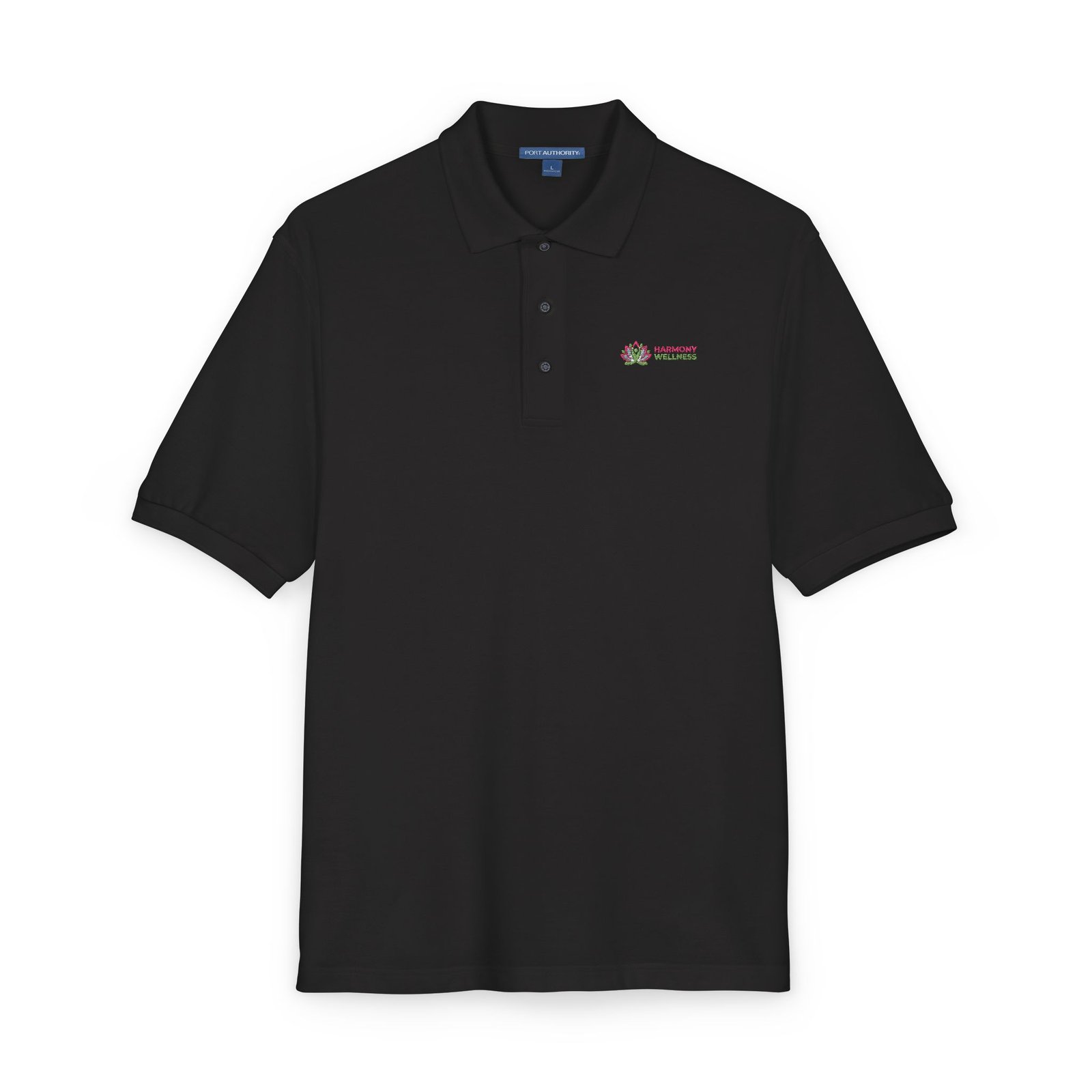- 65% polyester / 35% cotton pique — breathable, lightweight fabric